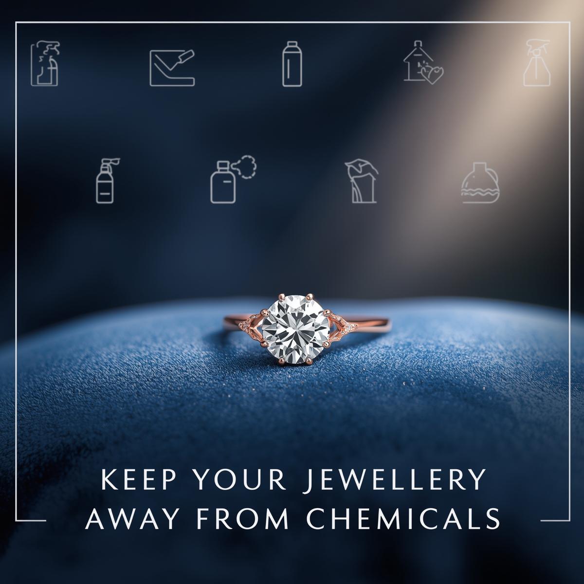 Your precious jewellery deserves gentle care. Exposure to chemicals found in perfumes, lotions, hairsprays, cleaning agents, or even swimming pool water can damage metals, dull gemstones, and weaken settings. To preserve the shine and longevity of your pieces, always remove your jewellery before applying any products or engaging in activities involving chemicals. A little caution goes a long way in keeping your jewellery sparkling for years to come.